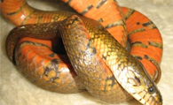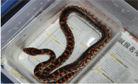 赤练蛇也很喜欢吃小鸡,孵鸡场淘汰的雏鸡也是一种上好的食料。赤练蛇有食蛇的习性,因此,每个饲养箱中只宜养1~2条,不宜多条混养,大蛇和小蛇、亲蛇和仔蛇都不宜养在一起。即使养在一起,也要注意及时投食,避免蛇因饥饿而吃下同类。赤练蛇吞食食物之后喜欢静卧,此时不要去惊扰它,如果受到惊扰,它很可能会把吃进的食物吐出来。
