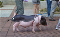 香猪(英文:fragrance pig),偶蹄目、猪科、猪属,以体小早熟,肉味鲜,闻名全国。 香猪又名“迷你猪”,其中以来自国家农业部门授予“中国香猪之乡”贵州黔东南地区的从江香猪、剑白香猪,和靠近贵州黔东南地区广西的巴马香猪最为著名,另还有环江香猪、藏香猪等品种,都属矮小猪种。香猪体格短小。其被毛为黑色,毛细有光泽、头长,额平,额部皱纹纵横,眼睛周围无毛区明显,耳薄向两侧平伸,背腰微凹,腹大圆而下垂,四脚短细,尾巴细小,尾端毛呈白色。 香猪6月龄公猪平均体重14.2公斤,体长65厘米,体高33厘米,胸围55厘米;母猪8月龄体重30公斤,体长70厘米,体高47厘米,胸围73厘米。育肥香猪屠宰率为63.6%,瘦肉率达52.2%。