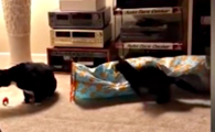 小猫练习跟踪和弹跳技巧 受突袭老猫反应超可爱