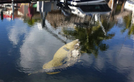 佛罗里达出现不寻常的友谊 美国鳄鱼和海牛在运河闲逛