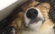 柯基庆生玩太疯好累 洗澡时竟然躺成一直线