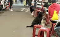 黑狗沿桌讨饭超专业 吃完一轮再重头来过
