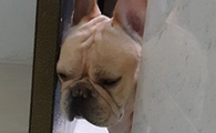 法斗太累走到一半竟断电 楚楚可怜地卡房间门口