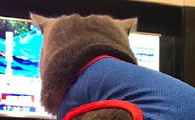 萌猫穿大号2XL超人装变紧身衣 魁武背影被拍下