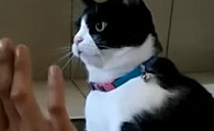 奴才想要摸肉球 却被喵皇霸气拍走不速鬼