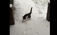 猫咪想要出去玩 踏上雪地吓得不到三秒回家