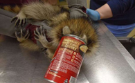 浣熊卡进浓汤罐头里 被兽医救出露超憨萌表情