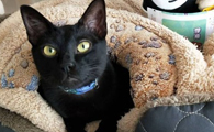 这也太懒了吧! 黑猫躲在棉被裡探头吃饭