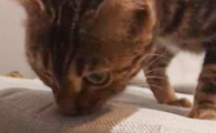 豹猫闻到自己尿味 露呆滞脸仿佛被自己的尿臭到