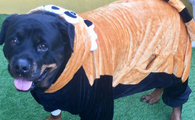 吓死宝宝了! 汪换上可爱浣熊装变身老虎