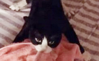 猫对妈咪的浴巾独有情钟 超用力抢到脚脚开掌花