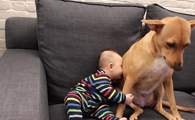 6个月的小主人学会吸狗 狗狗害羞不已又不敢动