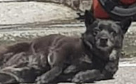 小孩可以不要这样吓人吗? 黑狗躺路边四脚朝天