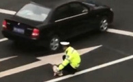 流浪狗误闯马路被撞伤 最暖警察肉身阻挡车流