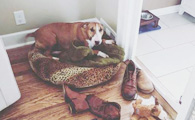 快乐的牛头梗有分离焦虑 需要鞋子的陪伴才能入睡