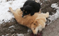 小黄狗不慎被车辆撞死 黑狗同伴陪伴久久不肯离去