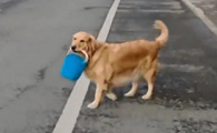 女子去超市遇到弃养事件的受害汪 成功收编回家