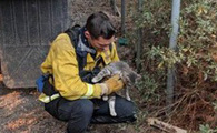森林大火小猫死里逃生 得消防员解救瞬间成好朋友