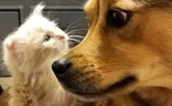 新领养的小猫咪 把狗兄弟从丧友之痛中拯救出来