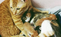 母爱爆棚的中途猫咪 主动照顾孤儿小猫