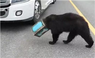 头戴咖啡罐 一只小熊闯进了高速公路