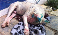 英国斗牛犬疑遭近距离射击 头部卡50颗铅弹