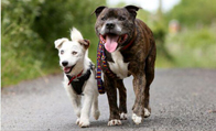 英失明小狗有导盲犬相伴 两狗形影不离