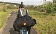 狗狗年纪大走不动 瘦弱女主人一把背起爱犬