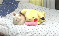 日本猫咪撞脸皮卡丘抱枕 睡姿表情神同步