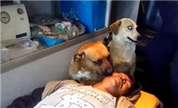 主人摔伤送医 忠犬心急紧跟随关切模样如亲人