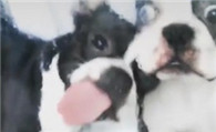 饲料粘玻璃对面 斗牛犬狂舔就是吃不到好痛苦