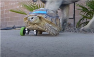 三脚乌龟走不动路 主人帮忙装辅助轮让其行走