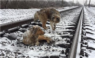 同伴受伤卡铁轨 牧羊犬保护同伴不离不弃