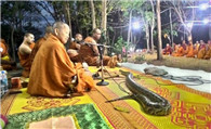 蟒蛇闯泰国诵经法会 爬上凉席一起听经