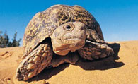 豹龟的栖息地分布在半干旱的草原。但在一些地势陡峭的地方,同样也能发现它们的踪迹。豹龟是草食性龟类。面对危险时,它们会把脚和头部收进自己的壳里以保护自己,这时通常会发出嘶嘶的声音,可能是由于四肢和头部被收回时空气从肺部被挤压而致。