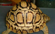 背甲长可达68厘米,头颈黄棕色无斑,前额鳞1-2枚,顶鳞为数枚小鳞,背甲为深浅相套的杂色,腋盾2枚,胯盾1枚,与股盾相接 。豹纹曾经是世界上第四大的陆龟龟种,典型的成龟体长可达到18英寸(460毫米),豹纹陆龟体重40磅(18公斤),有纪录指豹龟体长可达至70厘米(28英寸)和体重高达120磅(54公斤),外壳长达24英寸(610毫米)。埃塞俄比亚发现一只体长达到100厘米豹龟,这是一个罕见的案例。此外,在非常罕见的情况下,在苏丹等高湿度的热带雨林生活的豹龟体长可以达到45英寸。