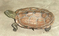 野生的金钱龟背甲的每块盾片上有清晰、密集的同心环纹,称为生长年轮。每一条环纹代表一年。而人工饲养龟的同心环纹却较模糊、稀疏,每条环纹间的距离较大。