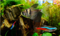 霓虹燕子公母 雄鱼下腹部位会泛现出鲜黄色