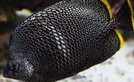 绣蝴蝶鱼黑色的体色上有白色鳞片,看上去象带亮片的衣服。绣蝴蝶鱼的鱼体呈卵圆形,吻短。体色以黑色为底,每一鳞片具有白色边缘,固看起来具有许多小白点。各鳍为黑色,背鳍、臀鳍及尾鳍具有黄色边缘。体长可达15厘米。