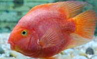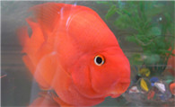 3、饲料:A/此鱼绝不能喂小河鱼,也许小河鱼的颜色激发了他们返祖的基因,只要一喂小河鱼,鹦鹉颜色肯定会变浅。血红鹦鹉喂小鱼,还会撑到,因为此鱼贪吃,不知饥饱。小河鱼对腮也不好,鹦鹉的鳃非常脆弱,小河鱼容易带进病菌。我曾经将鹦鹉和大型鱼混养,它们也挣抢小鱼吃,但每次它们吃了小鱼都会出点问题。更不能喂泥鳅,所有的鱼都会受不了的,不好消化,而且污染的可能性更大,我做过几次实验,连狗仔那样的鱼都受不了泥鳅。