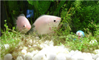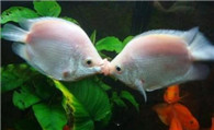 同斗鱼类的繁殖方式不同。它不吐沫营巢,而直接产漂浮性卵,浮在水面。卵呈琥珀色,如发白,则说明卵未受精。产卵量较大,每次4000-10000粒。不挑不拣好养活接吻鱼游动起来十分缓慢,显得仪态万千,是极具观赏性的热带鱼。因为鱼体微红带白好似初放的桃花,所以还有很多行家叫它桃花鱼。接吻鱼很容易饲养,它对水质没有特殊要求,水温在22-26℃之间就可以,很多学生在宿舍里用小茶杯、小瓶子也养活了接吻鱼。但是由于接吻鱼长起来个头较大,建议最好选择大一点的饲养缸。接吻鱼性情温和,成群结伴在各个水层活动,可以与其他鱼混养。而且它食性杂,一点也不挑食,面包虫、碎蚯蚓、人工饲料,主人喂什么,它就吃什么。不但个头生长快,抵抗力也不错,很少生病。开枝散叶儿孙多接吻鱼在人工饲养条件下没有固定的繁殖季节,而且繁殖较简单。接吻鱼15个月大的时候进入性成熟期,一年可繁殖多次。打算繁殖小鱼时,可按雌雄1:1的比例把亲鱼放入繁殖缸内,同时兑进一些蒸馏水,刺激亲鱼发情。每尾雌鱼的产卵过程要持续数小时,可产卵1000余粒,有的可达2000-3000粒。由于接吻鱼有吞吃鱼卵的习惯,所以繁殖缸里应该多种植一些浮性水草。