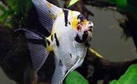 神仙鱼长12-15厘米,高可达15-20厘米,头小而尖体侧扁,呈菱形。背鳍和臀鳍很长大,挺拔如三角帆,故有小鳍帆鱼之称。从侧面看神仙鱼游动,如同燕子翱翔,故神仙鱼又称燕鱼。